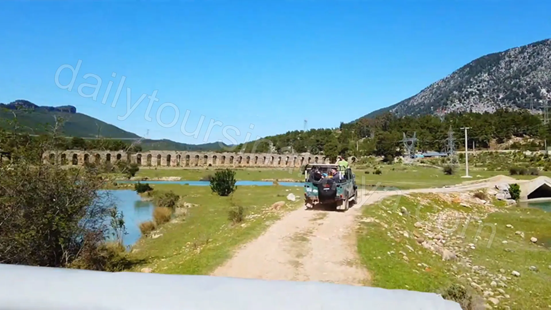Древние Акведуки: Первым местом, которое мы посетим на Манавгат джип сафари, будут акведуки. Мы посетим акведуки, построенные во 2 веке, что бы принести воду в античный город Сиде. 10 из 25 акведуков сохранились до наших дней. Мы посетим самый длинный из этих акведуков. Длина акведука, который мы посетим, составляет 340 метров. Всего он состоит из 44 арок. Это идеальное место для фотосъемки.