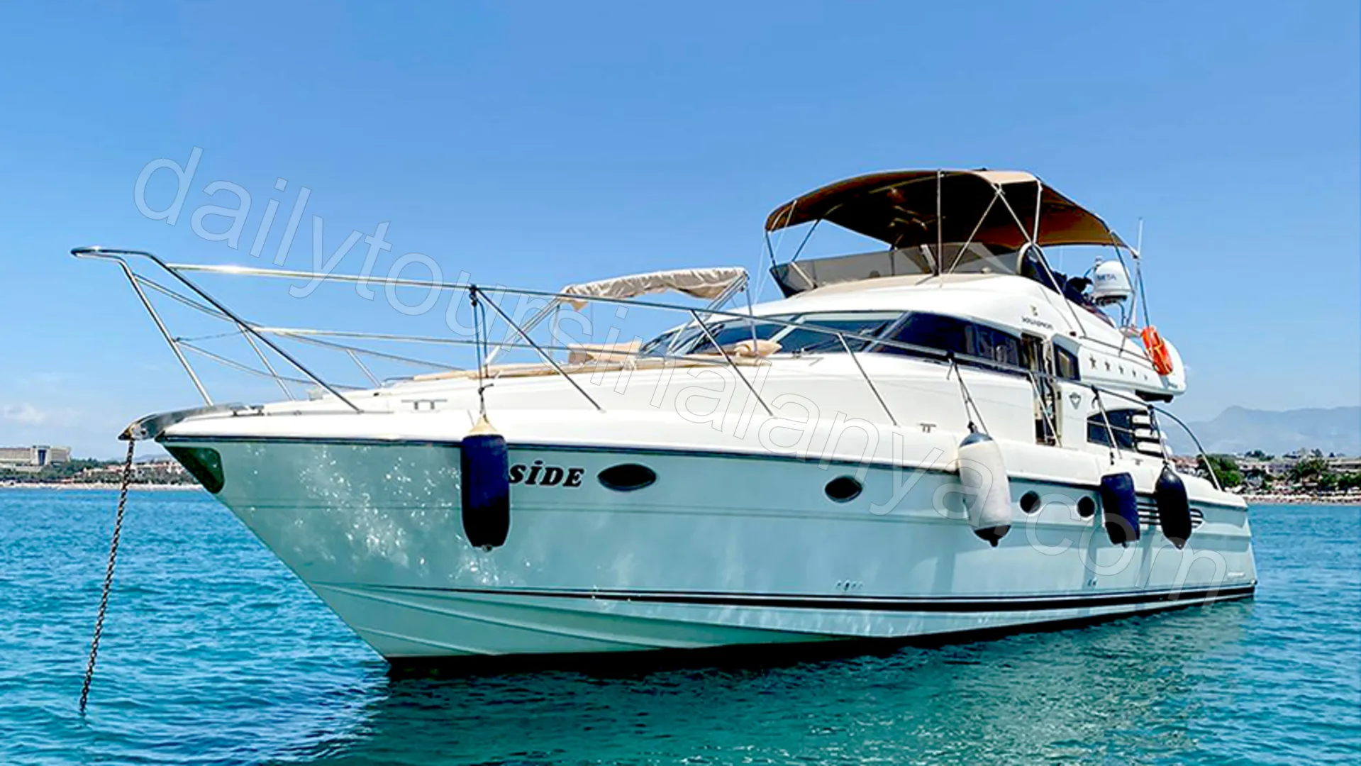 Moonlight is an original Fairline Squadron 55 that consistently receives five-star feedback from guests, standing out as one of the newest and most spacious luxury yachts in the Alanya area.