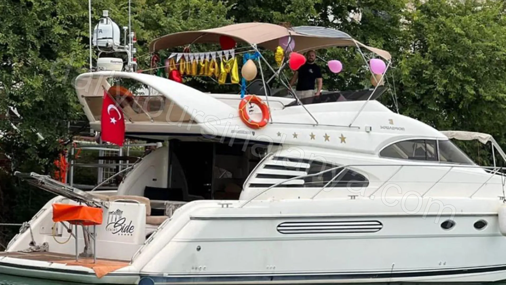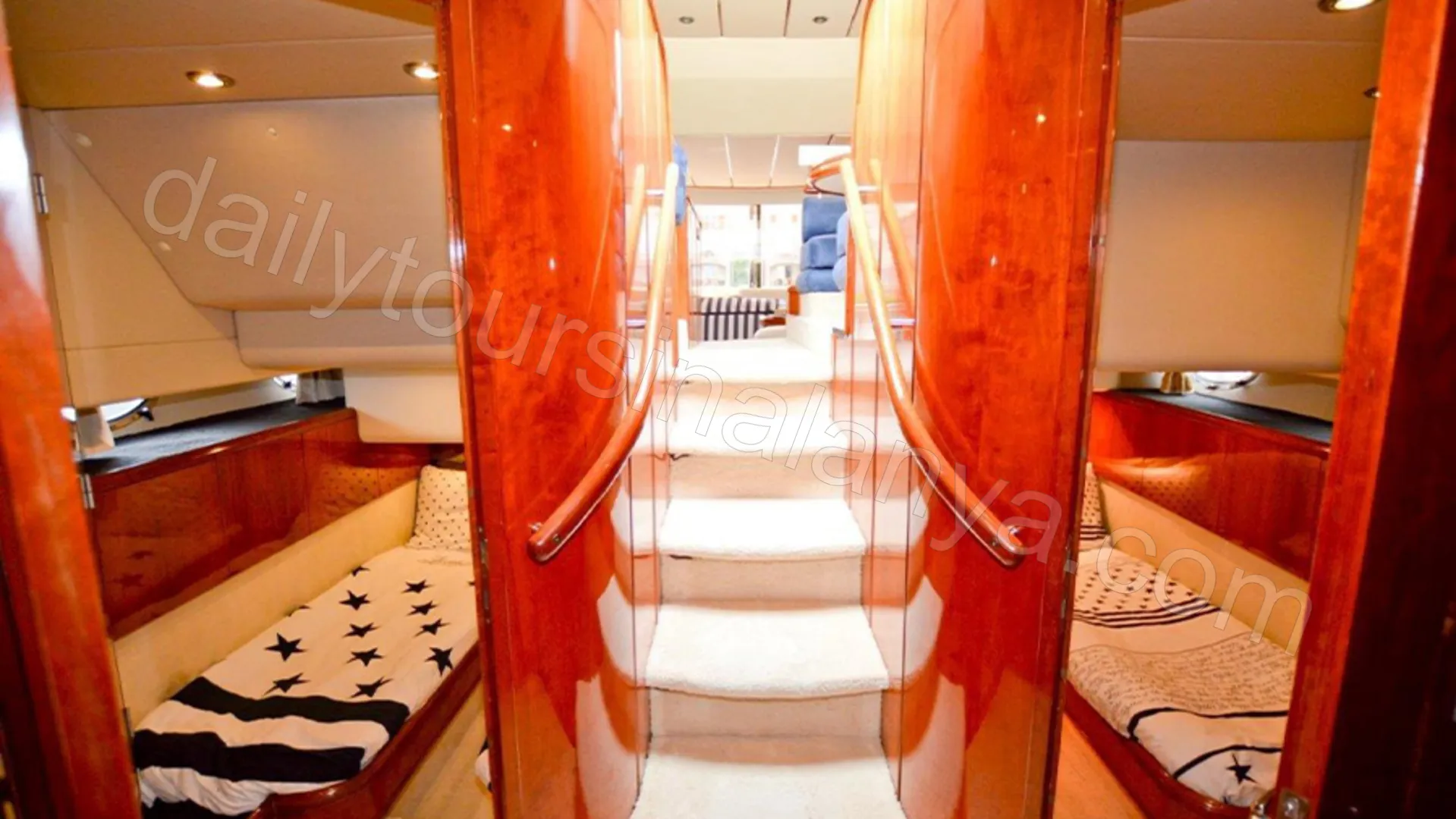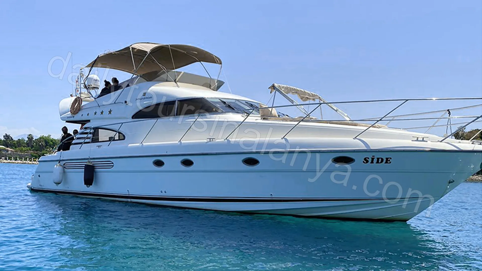 Moonlight is an original Fairline Squadron 55 that consistently receives five-star feedback from guests, standing out as one of the newest and most spacious luxury yachts in the Alanya area.