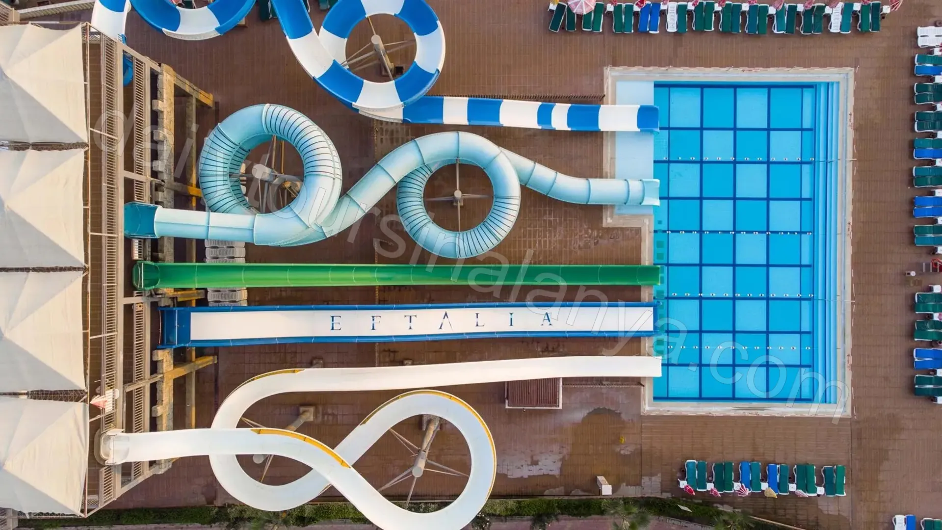 Om hotellets poolområde känns litet eller om du helt enkelt vill ha en dag som bryter semesterrutinen, är Alanya Waterpark i Türkler ett väldigt bra alternativ. Det här är en stor gemensam aquaparkpunkt som kopplas till flera Eftalia hotell, vilket gör att området är rymligt och har en tydlig resortkänsla. Anläggningen ligger längs en bred kustzon och är byggd för att du ska kunna stanna hela dagen utan att det känns trångt eller stressigt.