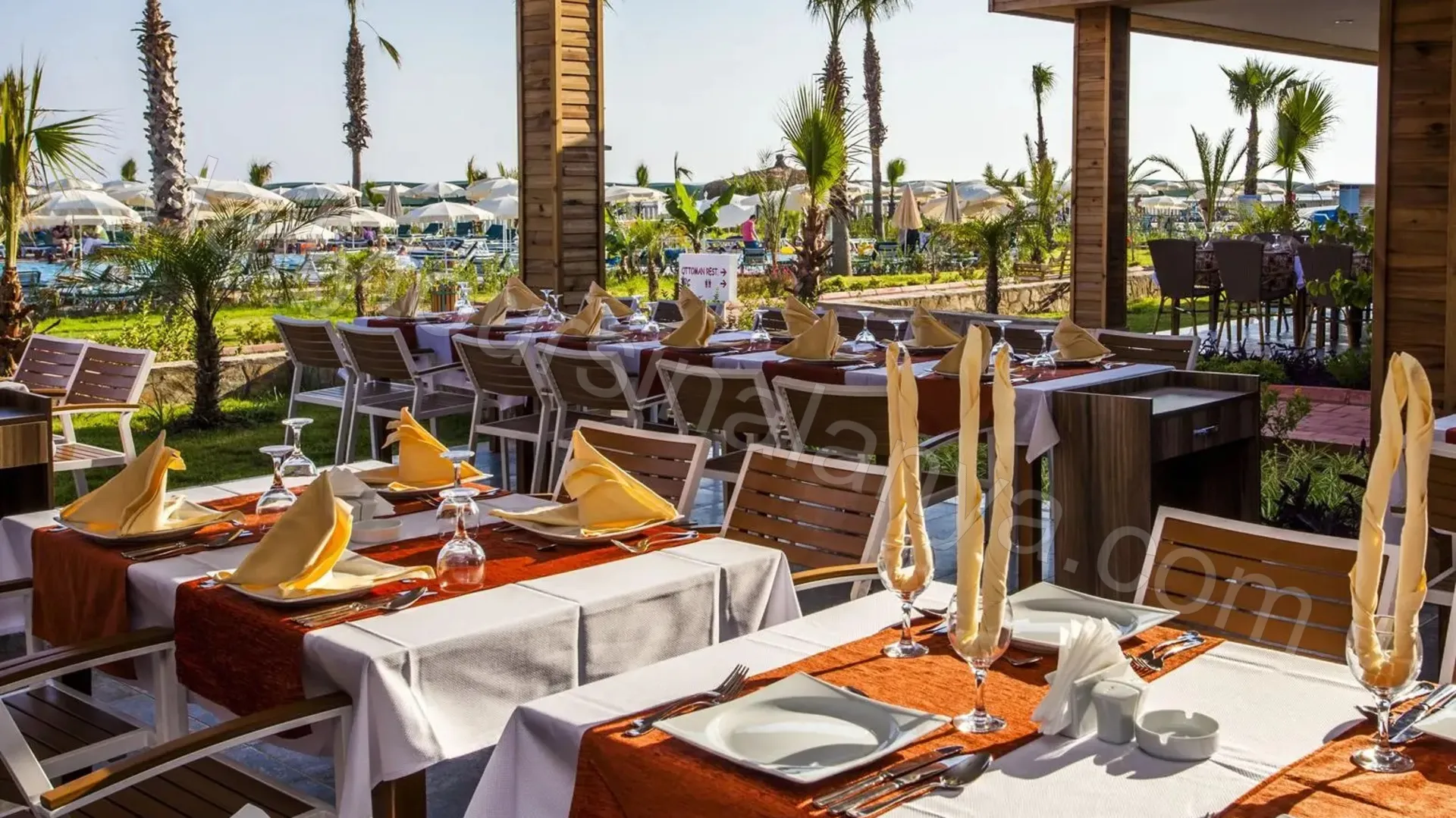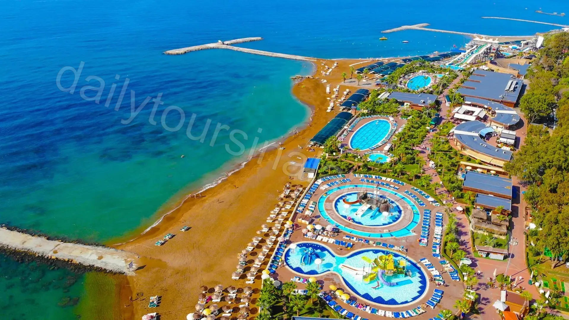 | Ingår | Försäkring, tur och retur transfer, inträdesbiljett till waterpark, obegränsade alkoholfria drycker, obegränsat med öl och vin, obegränsade bufférestauranger |