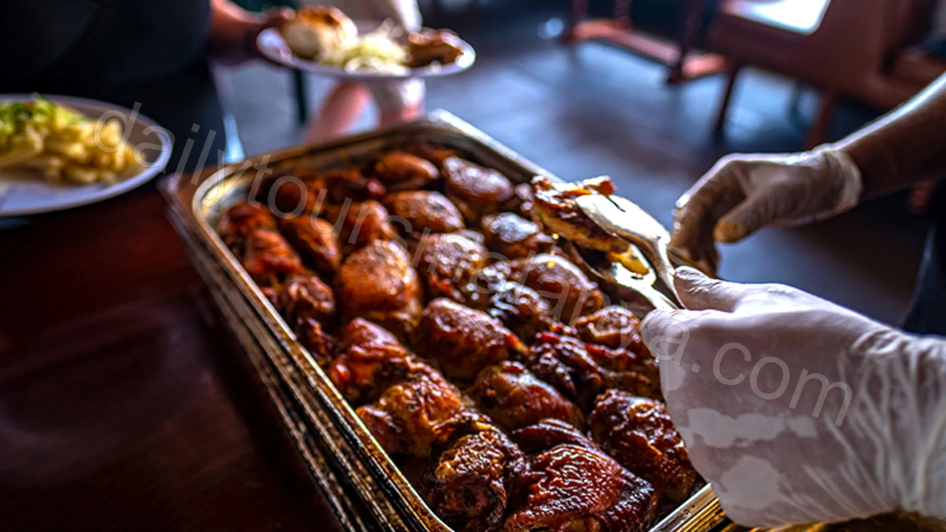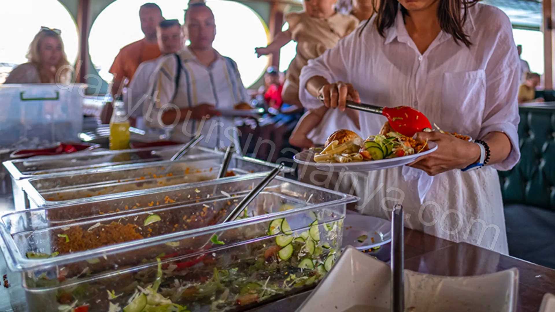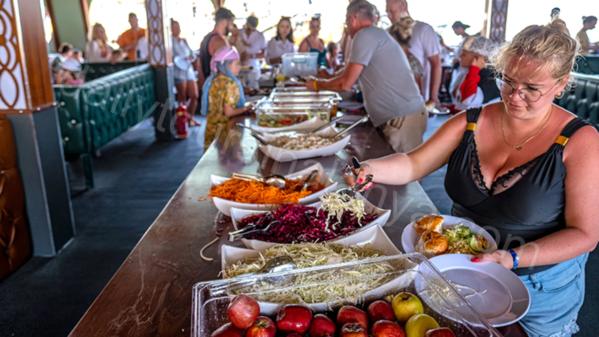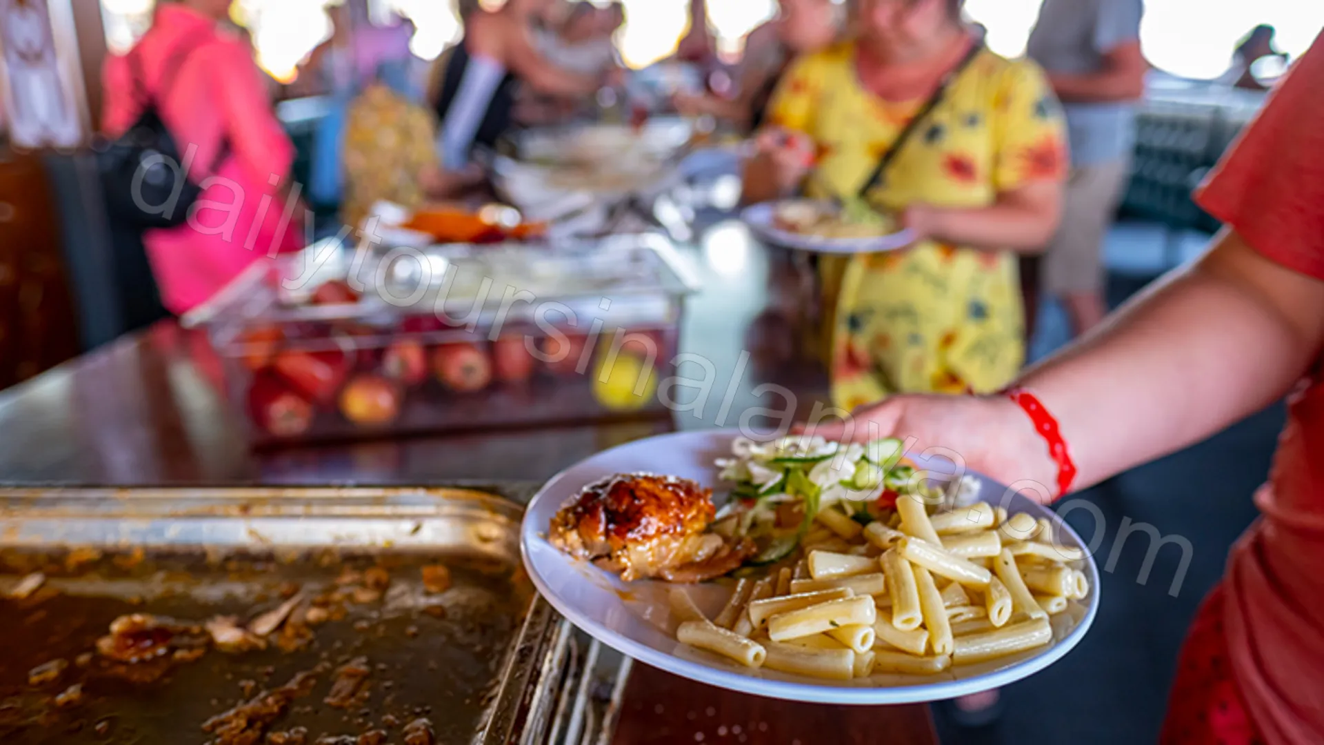 - Vid solnedgången serveras middag som buffé