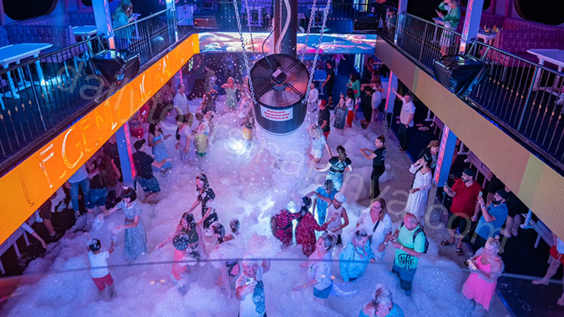 - Kvällsshow med eld och effekter, följt av skumparty med DJ musik
