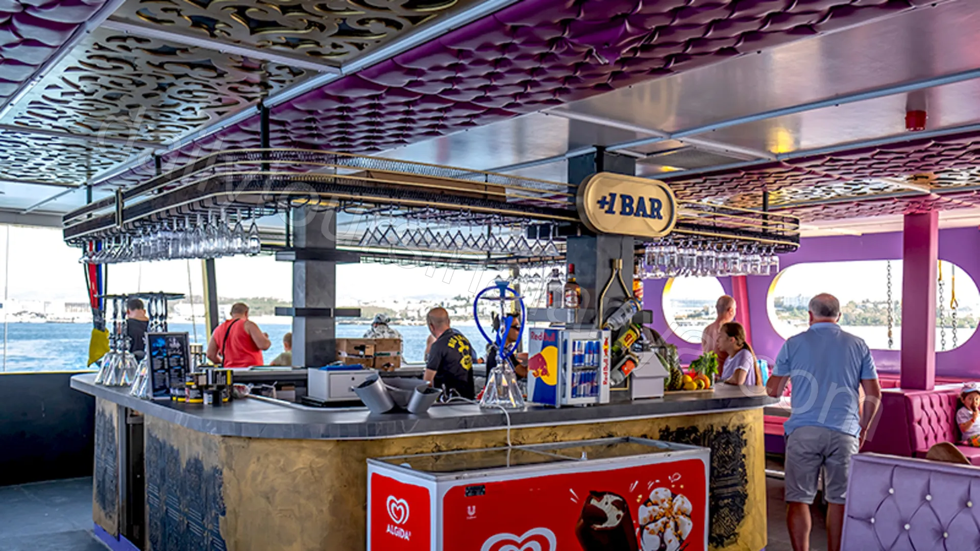 Det som höjer nivån är att det finns ett kök i drift och flera barpunkter ombord. Det gör att kvällen känns mer organiserad och att servicen flyter på bättre. Du slipper onödiga köer och kan i stället fokusera på utsikten, havsluften och stämningen. Upplägget är gjort för att kännas avslappnat men ändå professionellt.