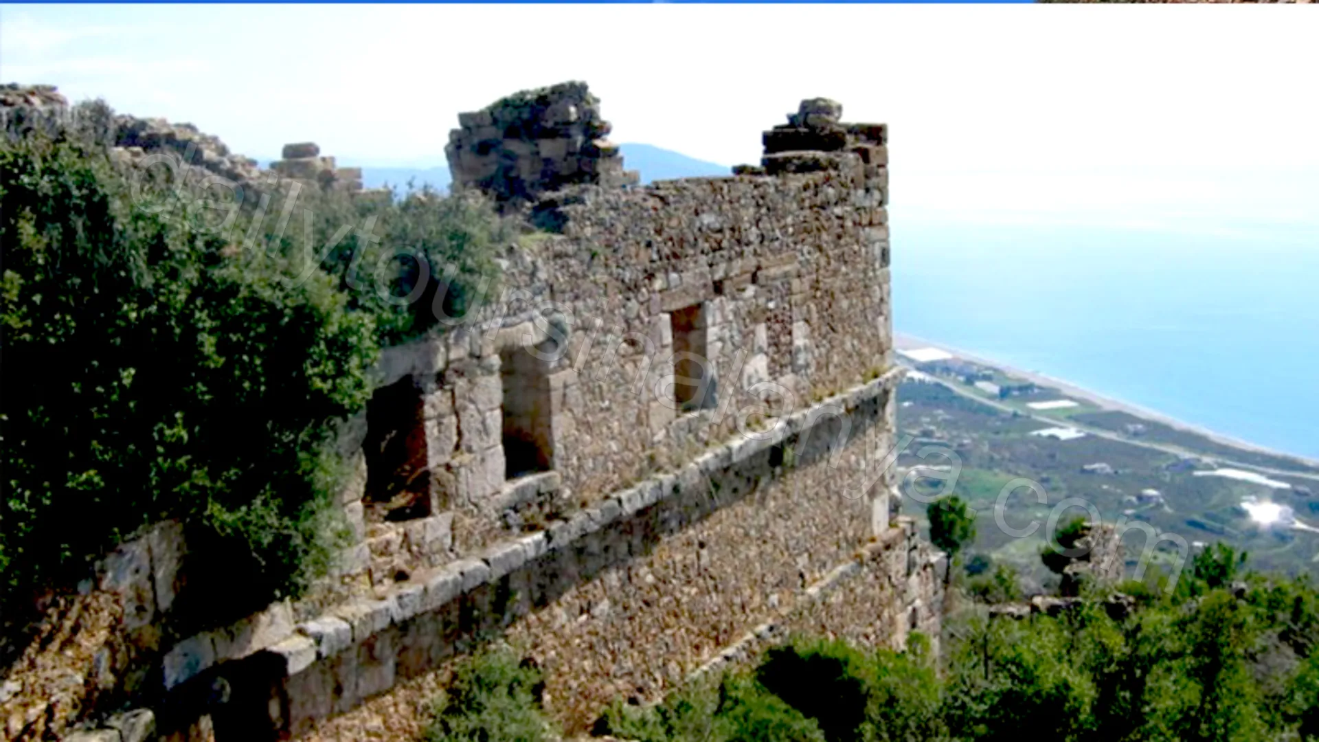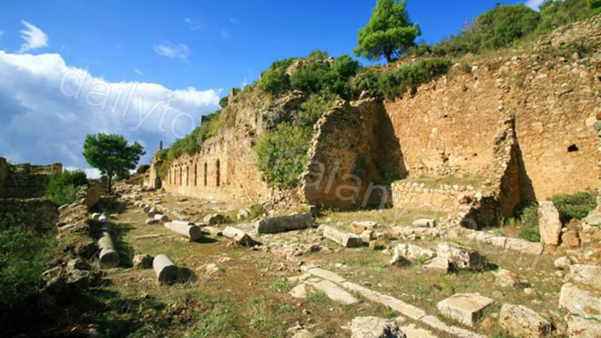 - Kort sträcka nära ruinerna vid Syedra och förbi ett lokalt byområde.