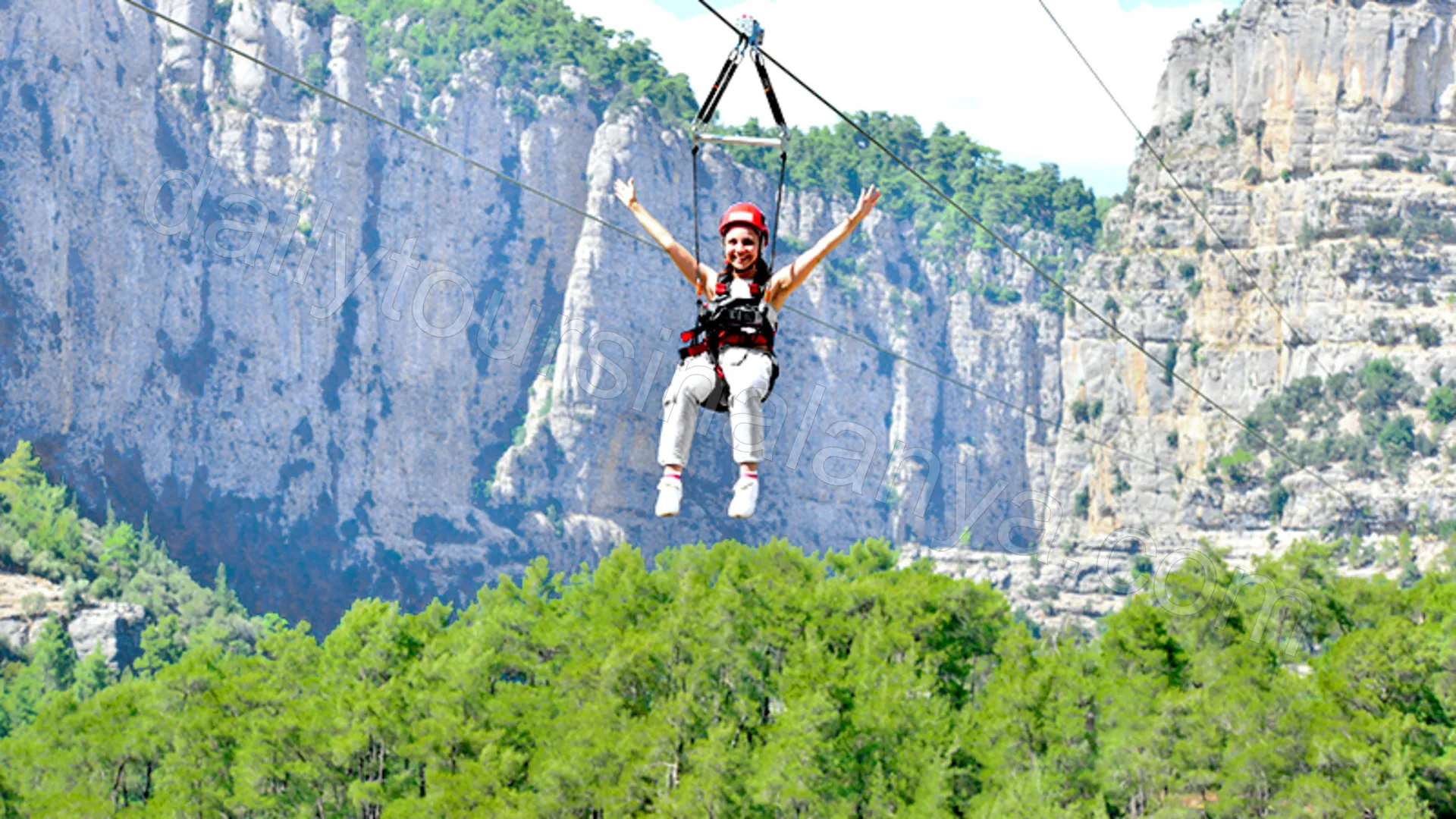 Zipline i Tazi Canyon och forsränning från Alanya, en dag byggd för adrenalinkänsla