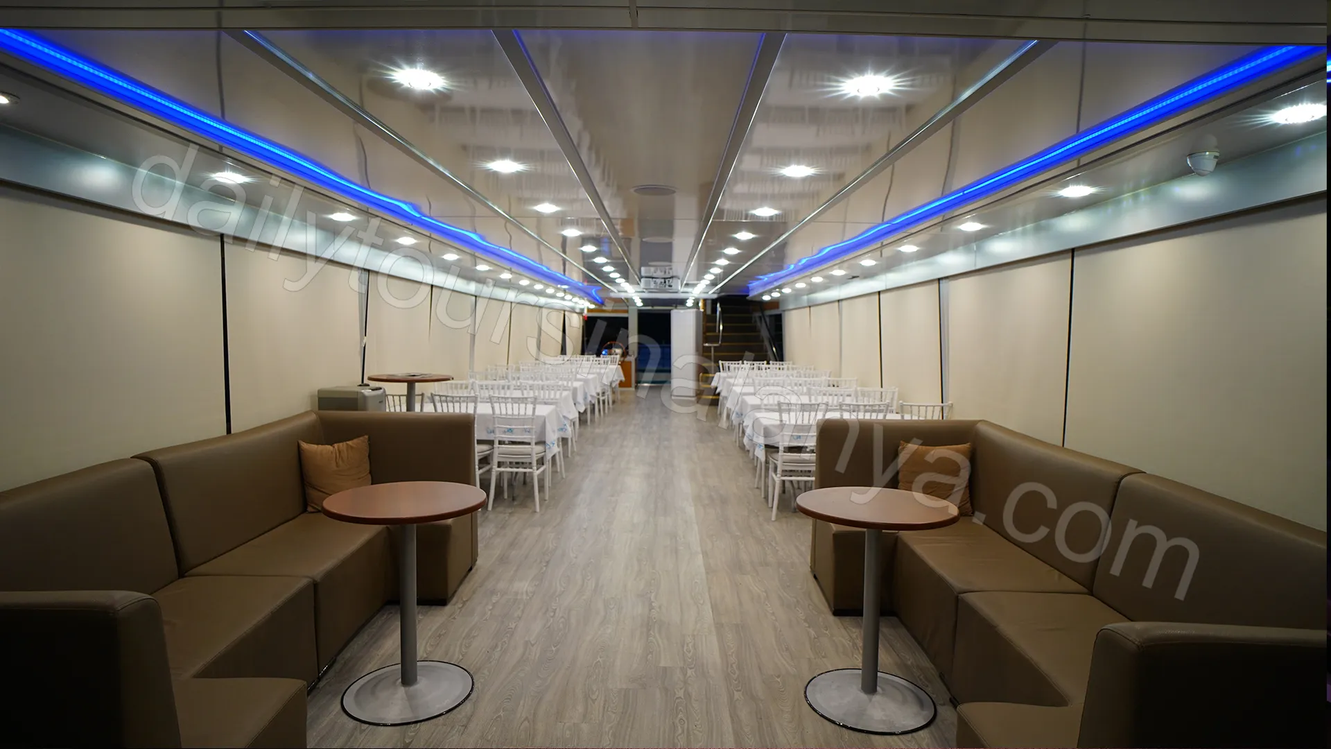 - Open buffet breakfast and lunch with Chiavari-style restaurant seating aboard Alanya's only luxury yacht