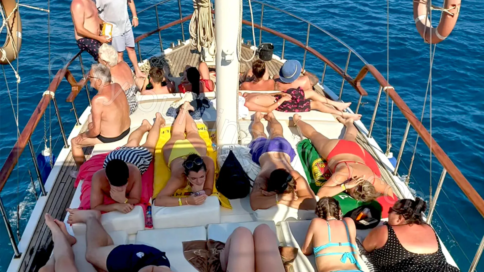 Önemli not: Dışarıdan alkol getirildiğinde 20€ servis ücreti alınır. Teknede alkol satışı da mevcuttur ve fiyatlar makuldur. Servis için gerekli bardak ve buz teknede hazırdır.